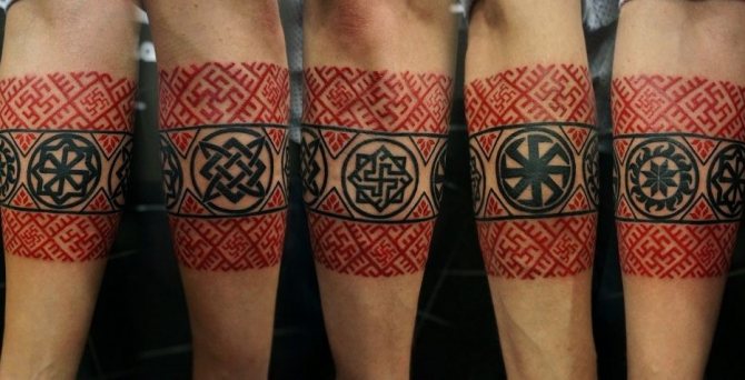 Амулетът е символ, на който се приписват магически свойства. Амулетите имат за цел да предпазват от нещастие и да носят добро. Татуировките сред славянските народи приличат на ритуал. Татуировката винаги е била правена от мъдреци, придружена от транс и ритуални песни.