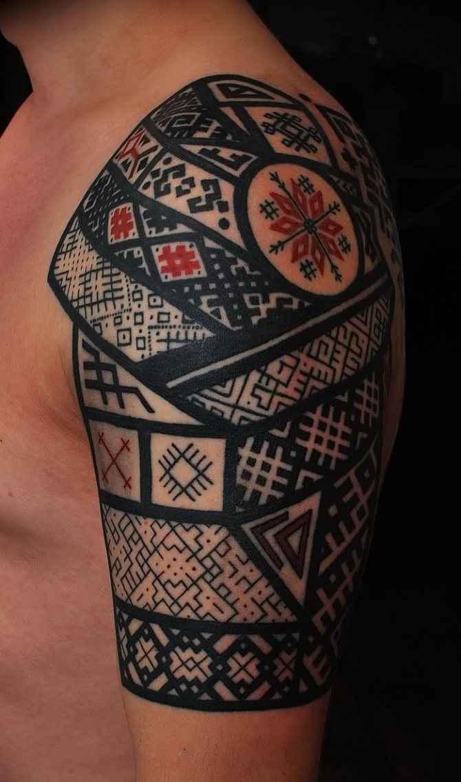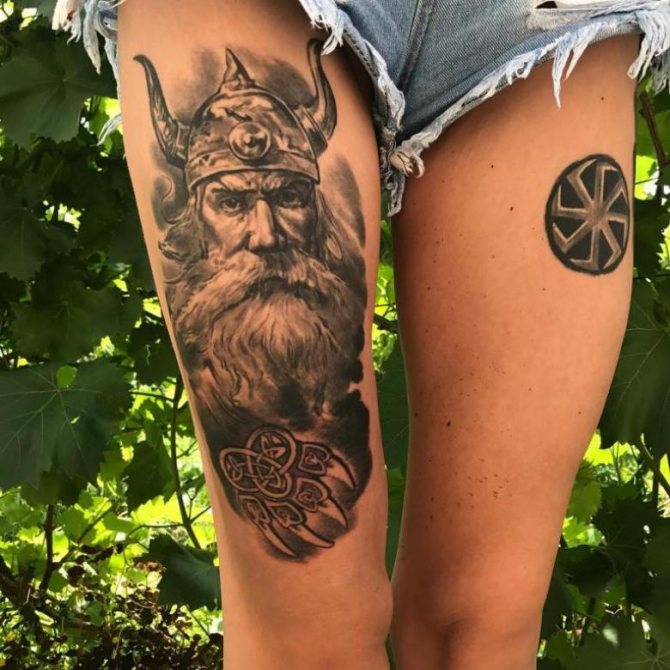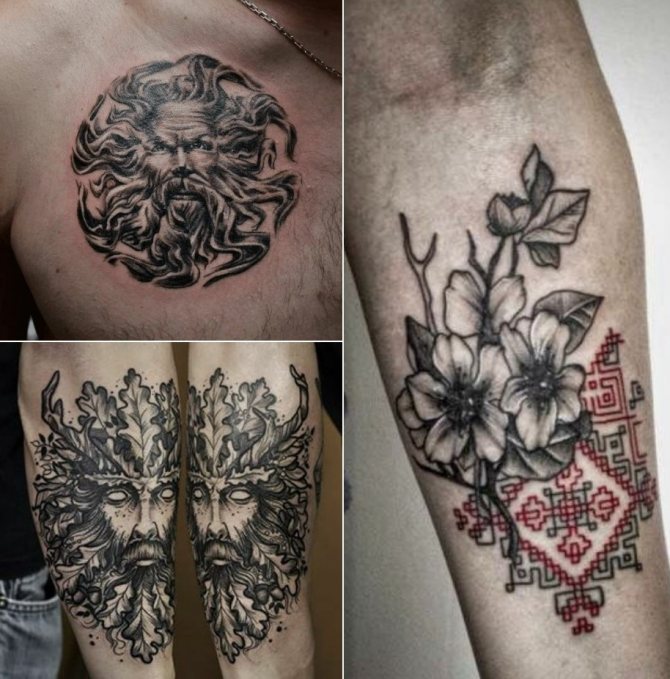 - Татуировки с изображения на богове. Татуировката с образа на Велес е подходяща като славянски амулет за повишаване на духовните сили, носещ просперитет. Перун представлява издръжливост, сила, ярост, енергия. Сварог - защитава земното съществуване, допринася за духовното благополучие. Даждбог - покровител на земеделието.