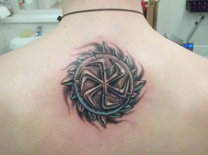 Най-често в татуировките се използват слънчеви изображения, т.е. схематични рисунки на слънцето. Това е символът на Слънцето, което винаги е било основен символ на благодатта, топлината, плодородието и най-ярките висши сили. Слънчеви знаци: Коловрат, Светорот, Маяк, Гръмотевица, Черно слънце и други.