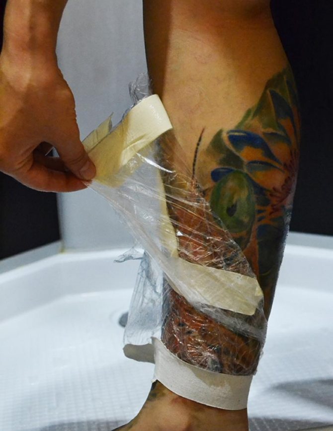 Трябва да се отбележи, че превръзката трябва да припокрива зоната с 1,5 cm от всички страни на татуировката. Ако дизайнът е голям, трябва да се нанесат няколко фолиа със застъпване повече от 2 cm. Ако татуировката е голяма, трябва да се нанесат няколко припокривания със застъпване от 2 см.