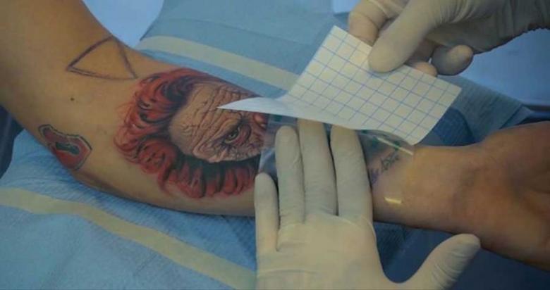 - След като отстраните лентата, изплакнете татуировката с топла вода, като отмиете всички следи от петна от кръв и лепило.