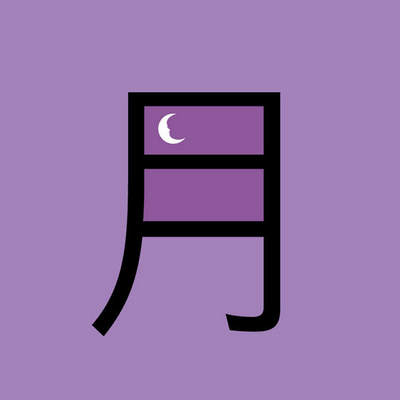 - 月 yuè - символът има две значения: луна и вечер. Този символ представлява пиктограма, която изобразява млада луна с полумесец.