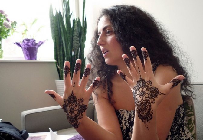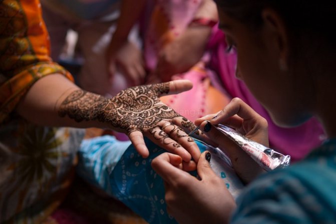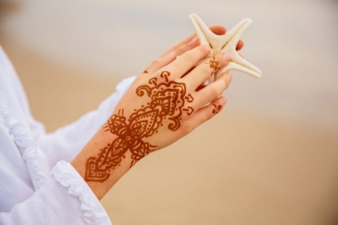 - Разполагане на модела: мехенди издържа по-дълго върху по-грубите участъци на кожата, върху стъпалата или дланите на ръцете;