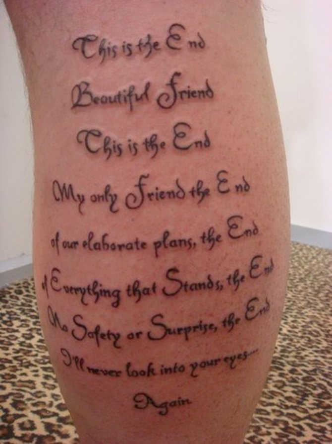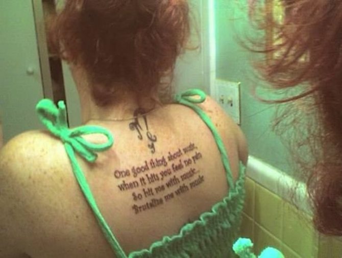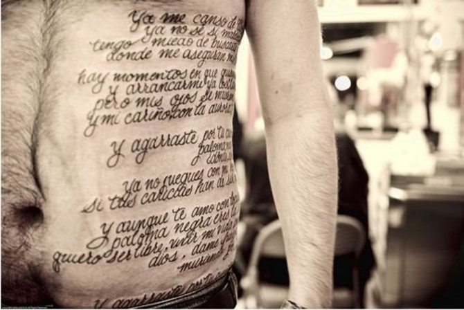 Въпреки че някои са направили най-простите рисунки и цялата сесия е била придружена от изключително неприятна болка. Въпреки това тази област се смята за най-малко болезнена. Друго предимство на татуировката в тази област е, че тя може да се използва за създаване на доста голямо изображение.
