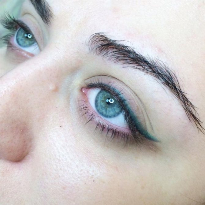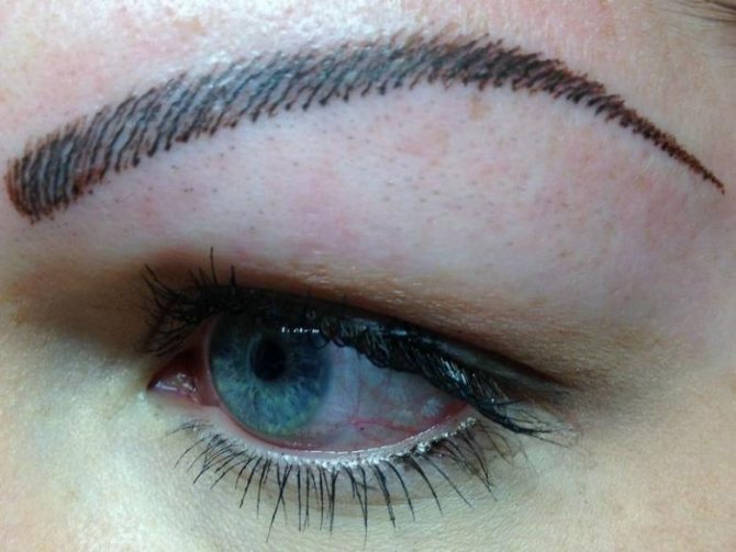 Татуировката над веждата винаги е съпроводена с изключително силна болка. Тук кожата притежава висока чувствителност, липса на мастен слой, набор от нервни окончания.