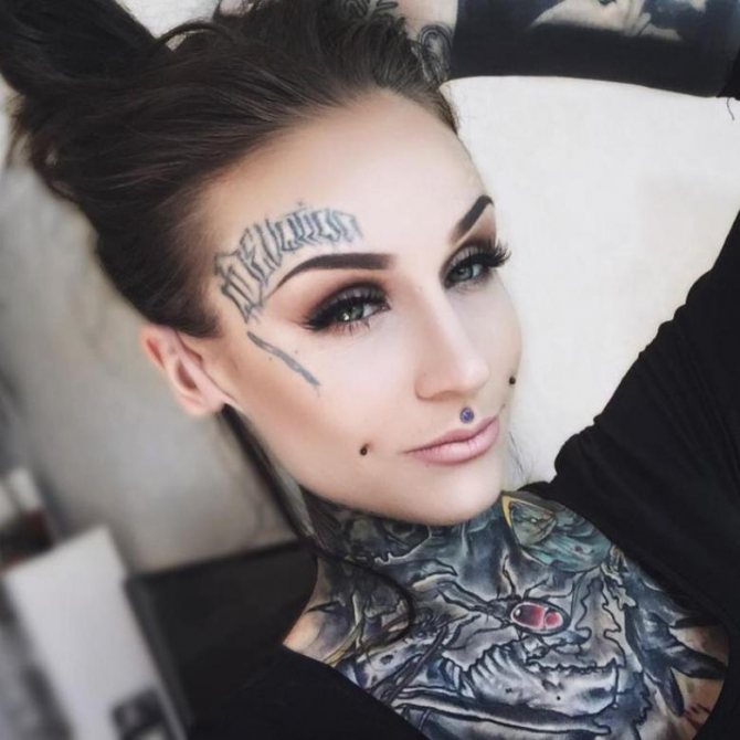 Татуировка на лицето и клепачите - екстремен начин на себеизразяване, който не се разбира от всички, поради което този жанр е съдбата на напълно самодостатъчни индивиди, които са напълно безразлични към мнението на другите.