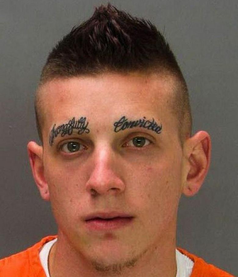 Татуировката в горната част на веждите представлява малък надпис или модел (стрела, роза, кинжал).