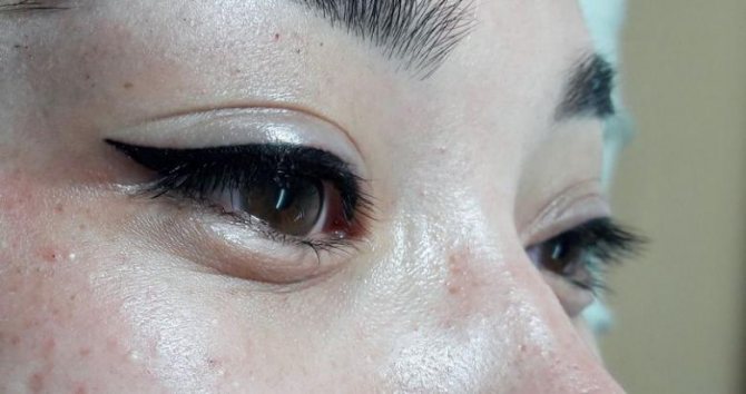 Ако под долния клепач има само една точка, тя се нанася точно под центъра на окото.