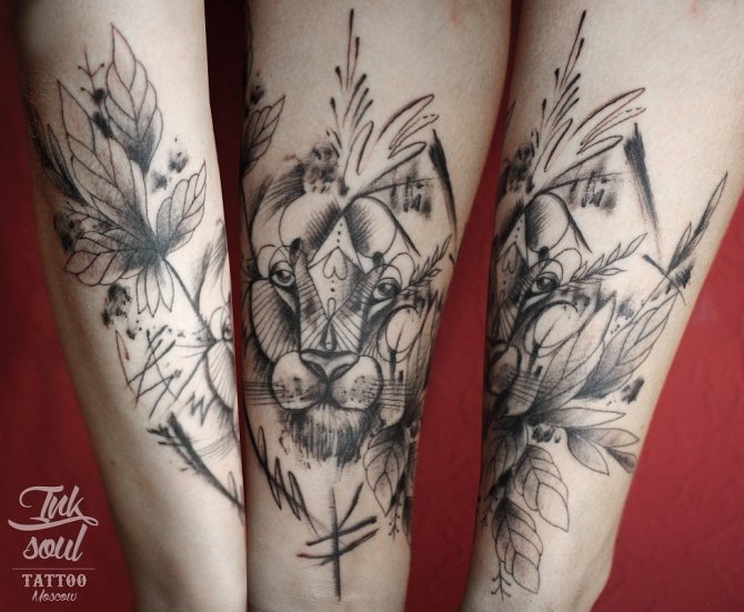 Татуировките с лъвици са много популярни. Обикновено те са нарисувани спокойни, величествени във всякаква комбинация. Скиците на татуировката на лъвицата в състояние на ярост, агресия на практика не се срещат.