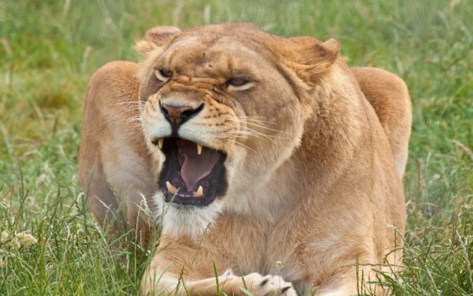 - Лъвът със стиснати зъби е предизвикателство към другите, желание да покаже своята мощ и сила;