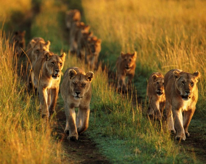 Женските, които нямат толкова разкошна грива, са по-лесни за управление в горещото африканско време, а късата им козина по цялото тяло им позволява да се промъкнат през всеки гъсталак.