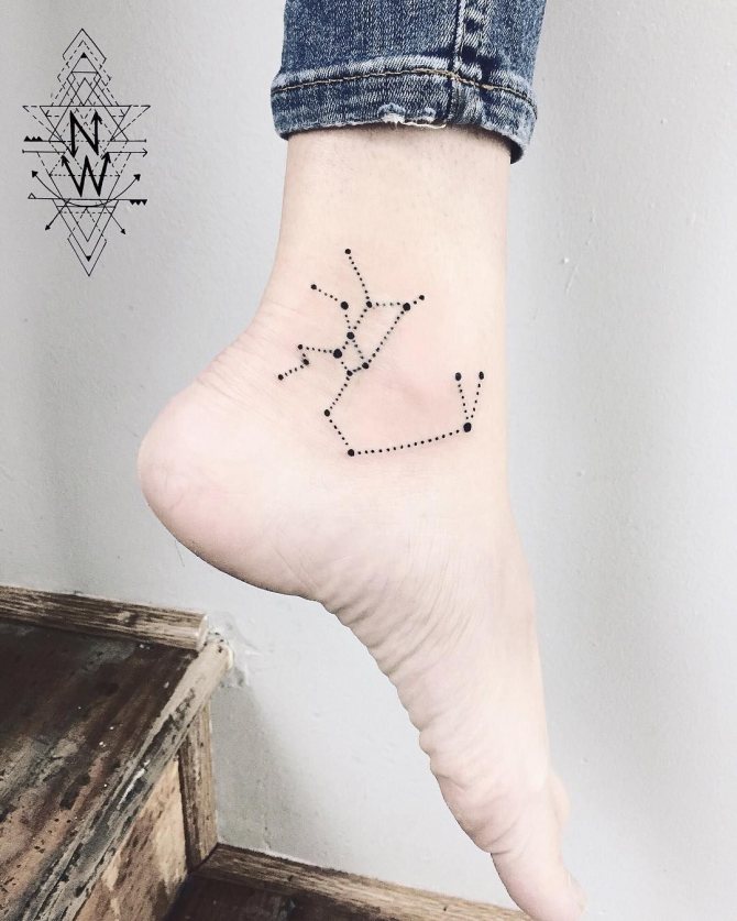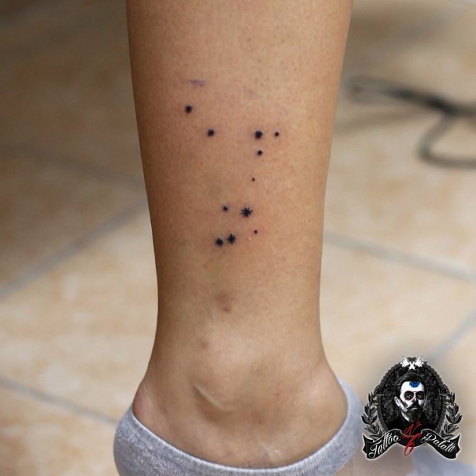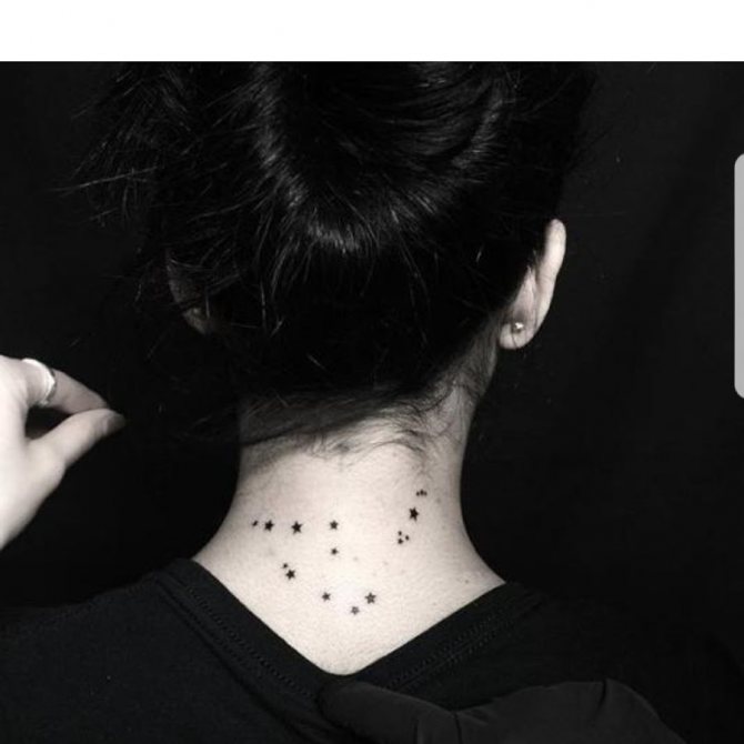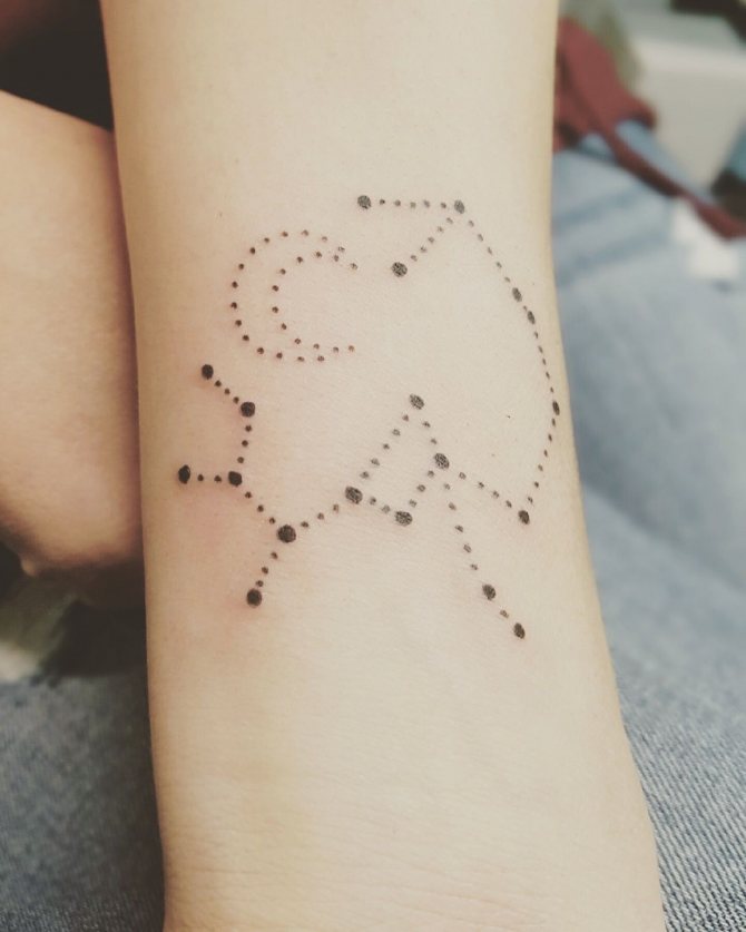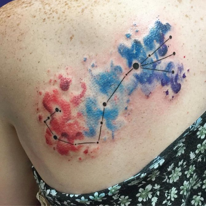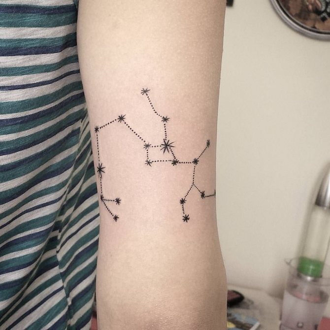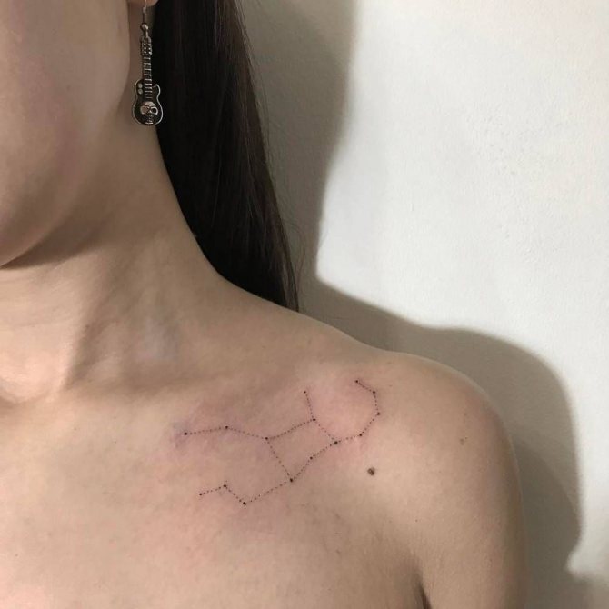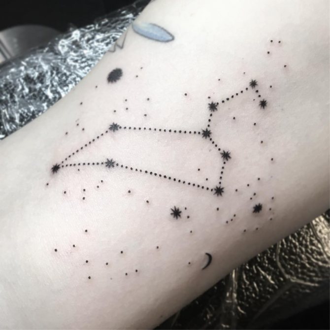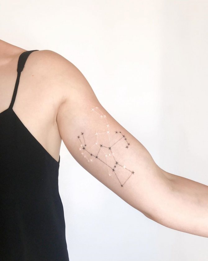 Татуировката със съзвездие се смята за универсална и изглежда еднакво красива както върху мъжките, така и върху женските части на тялото. Съзвездието, под което ви е било писано да се родите, е неразделна част от живота ви. Този факт е в състояние да ви характеризира като личност.