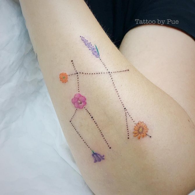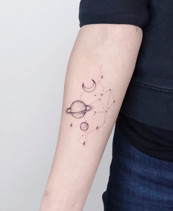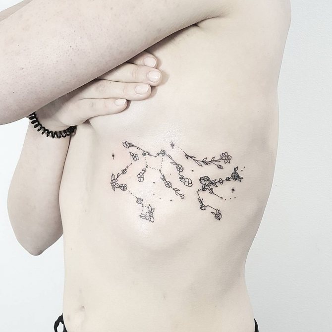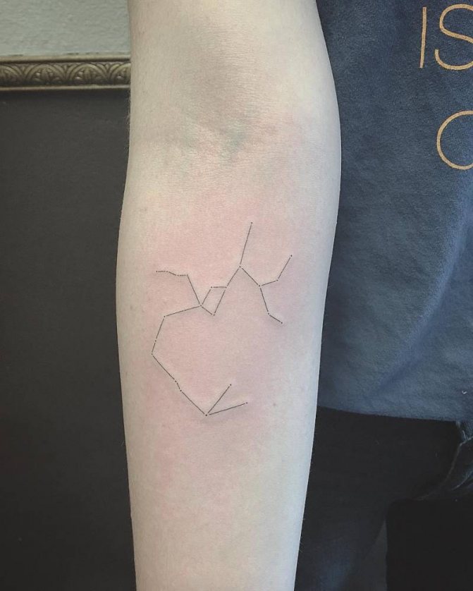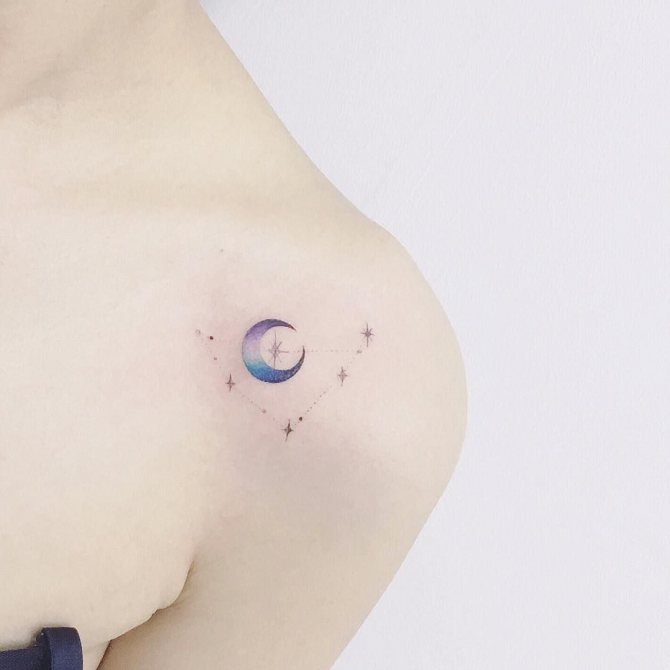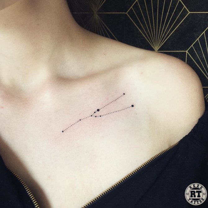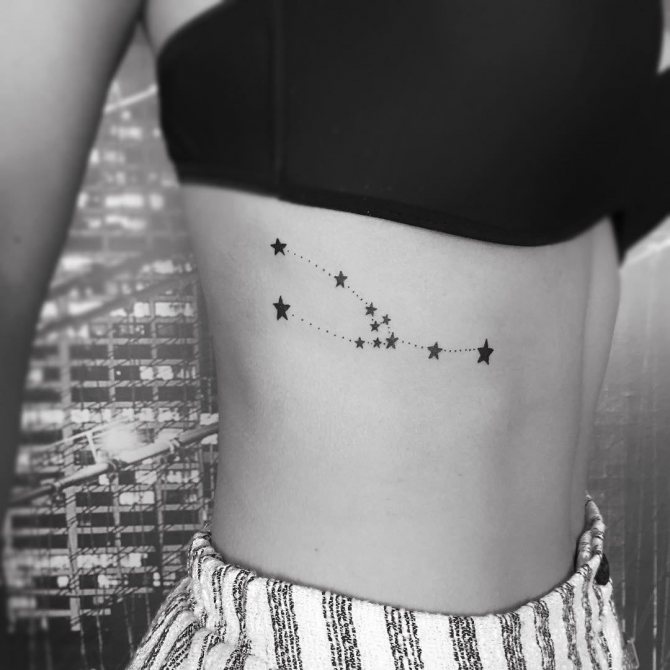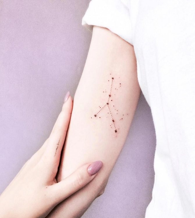 Татуировката със съзвездие се смята за универсална и изглежда еднакво красива както върху мъжките, така и върху женските части на тялото. Съзвездието, под което ви е било писано да се родите, е неразделна част от живота ви. Този факт е в състояние да ви характеризира като личност.