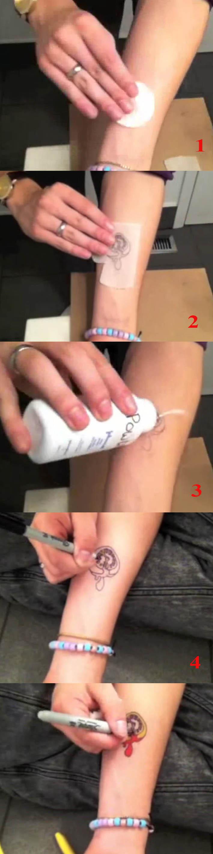 Преводът на татуировки, който може да се направи у дома по няколко начина, е увлекателно хоби, но трябва да се има предвид, че използваните бои могат да предизвикат алергични реакции. За рисуване се препоръчва да се избират само материали, които не съдържат токсични вещества - хранителни, медицински и козметични бои.
