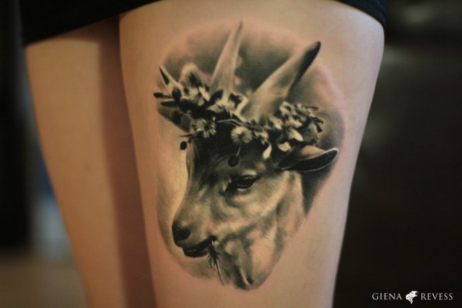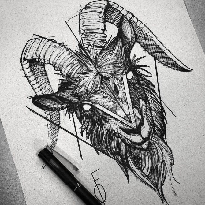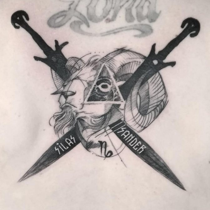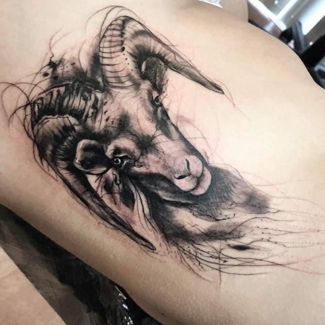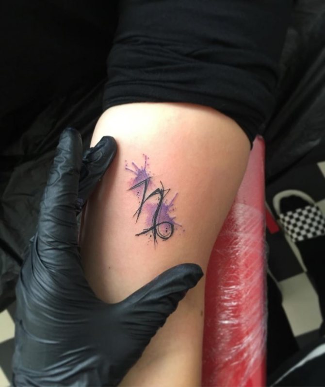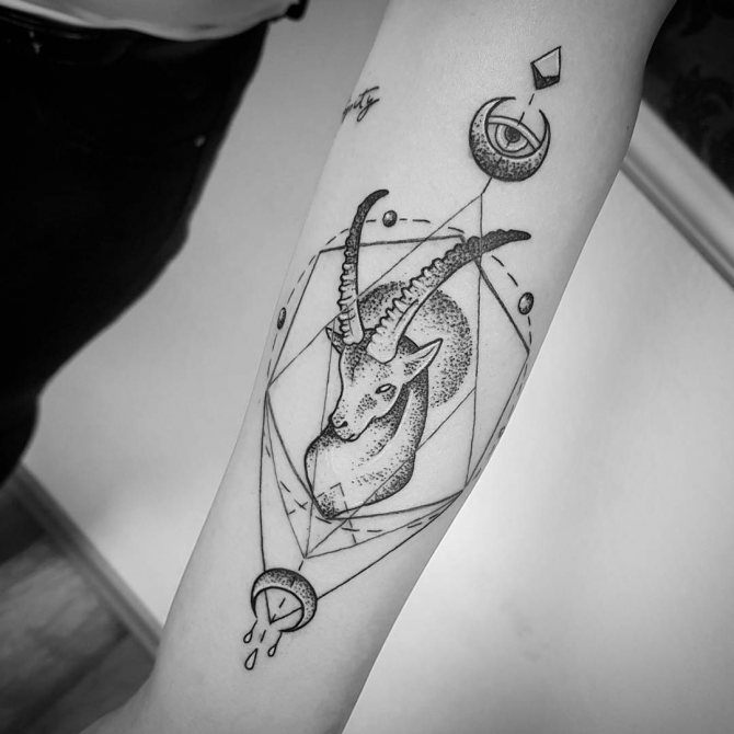 Ако сърцето ви е завладяно от цветна и колоритна татуировка, тогава за нейния дизайн трябва да погледнете по-близо до техниката на акварел, нова скулптура или реализъм. Използвайте минимализъм за дискретно и монохромно изображение. Геометрични композиции и абстракция, каквито няма други, ще подчертаят скрития сакрален смисъл. Литерингът позволява нанасянето на татуировки с всякакъв размер върху тялото, със или без вихри. Много оригинален външен вид Козирог, проектиран в етнически стил или геометрична техника, която се характеризира с правилни форми и наличие на ясни линии.