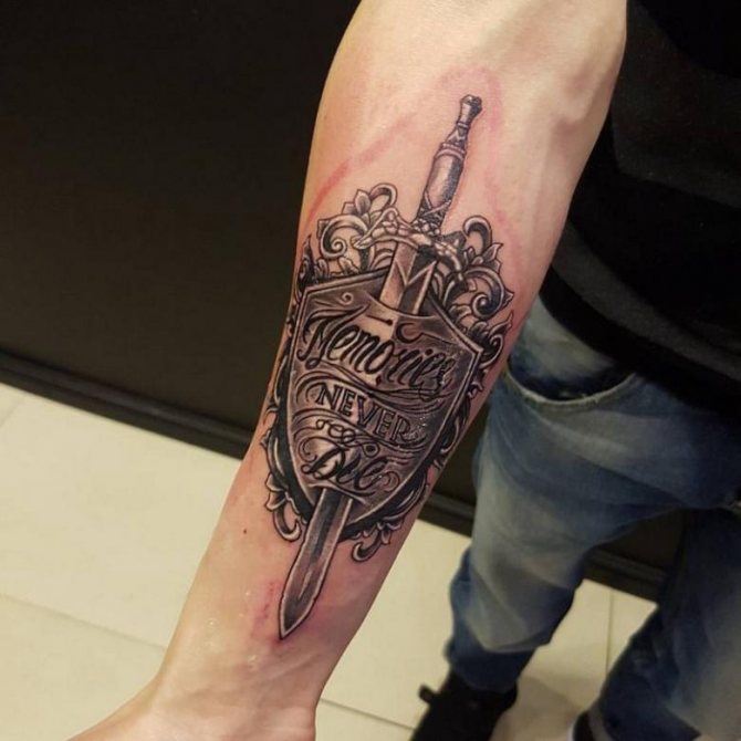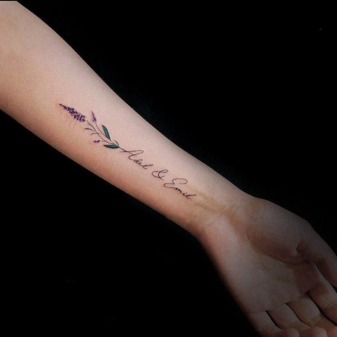 Tetovací nápisy. Nejoblíbenější tetování mezi muži a dívkami jsou náboženské texty, moudra, životní motta a různé nápisy na předloktí. Nápis se aplikuje ve vašem oblíbeném jazyce: hlavní je být si jistý správným překladem. Obvykle se text nanáší černobíle, ale někdy se vyskytují i barevná tetování.