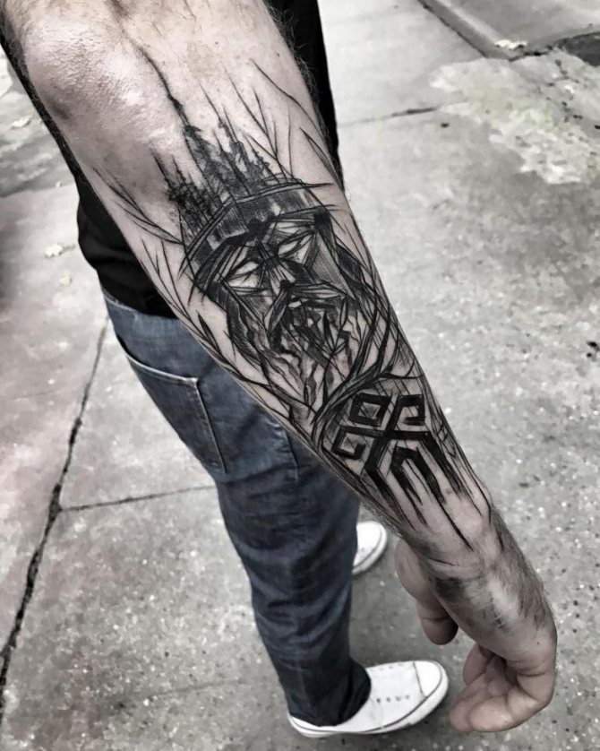 Profesionálové v oblasti tetování považují černou práci za ideální řešení pro předloktí. V tomto stylu je lepší skórovat celé rameno, pak to bude vypadat mnohem lépe. Obrázek lze zobrazit z jednoho návrhu nebo z několika návrhů. Tento styl, provedený v černobílém provedení, odhalí celý příběh.