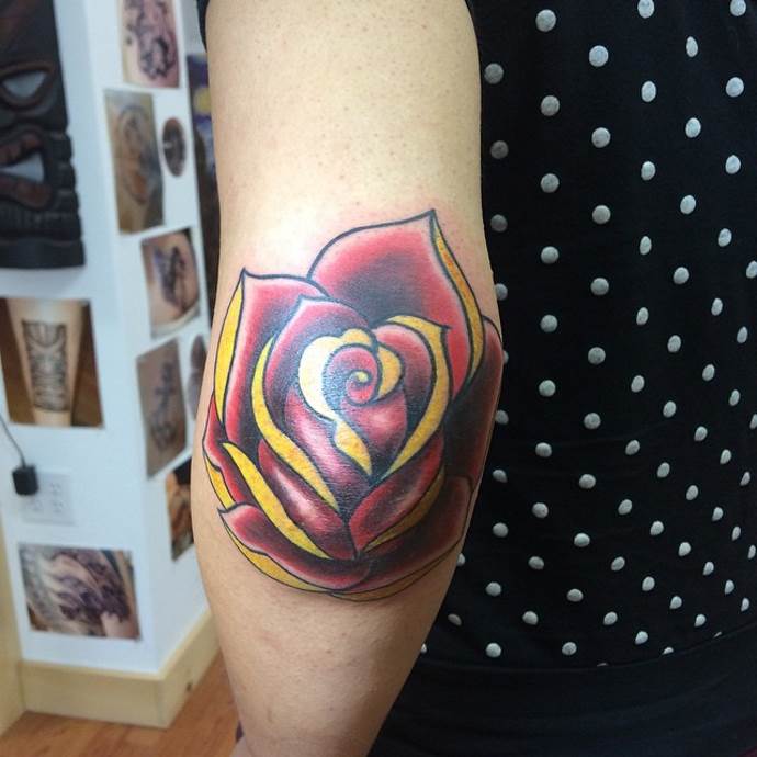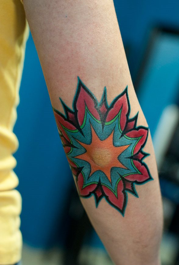 Bude to bolet, protože intenzita pocitu závisí na velikosti prostoru mezi kůží a kostí. Tetování na vnitřní straně lokte lze z hlediska bolestivosti přirovnat ke kolenu. Kost je blízko a kůže je tenká. Svůj náčrt si proto dobře promyslete, protože složitá práce trvá dlouho.