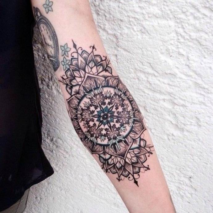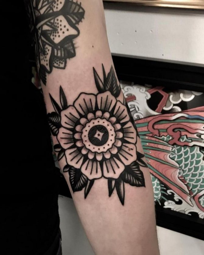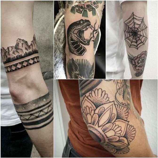 Zajímavá tetování na loktech jsou módním trendem. Dekorativní design lze aplikovat podle všech pravidel v tetovacím salonu.