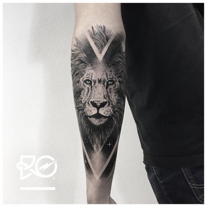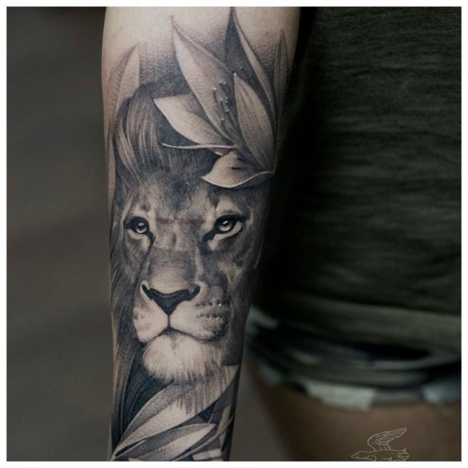 Mnoho mužů přitahuje obraz lva, statečného a silného ochránce. Stejně jako lev brání své teritorium a rodinu, skutečný muž brání své blízké a své životní zásady. Toto tetování je také vhodné pro muže, kteří jsou zvyklí zvládat vše sami, lidé s jasnou osobností.