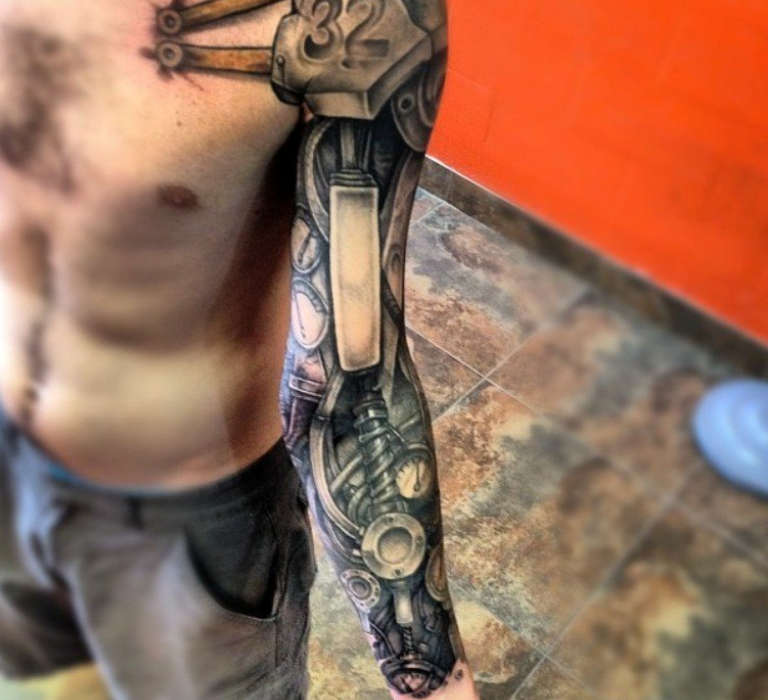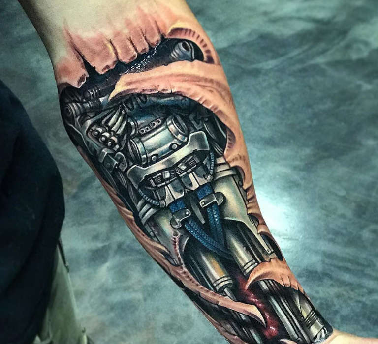 Cyberpunk. muži se s tetováním spíše ztotožňují, takže je třeba, aby kyberpunkové kresby fascinovaly a zdůrazňovaly odvahu a sílu nositele. Druhý název pro tento styl je biomechanika a není to jen módní způsob, jak říct, že kyberpunk je způsob, jak vyjádřit svou sílu. Druhý název stylu je biomechanika.