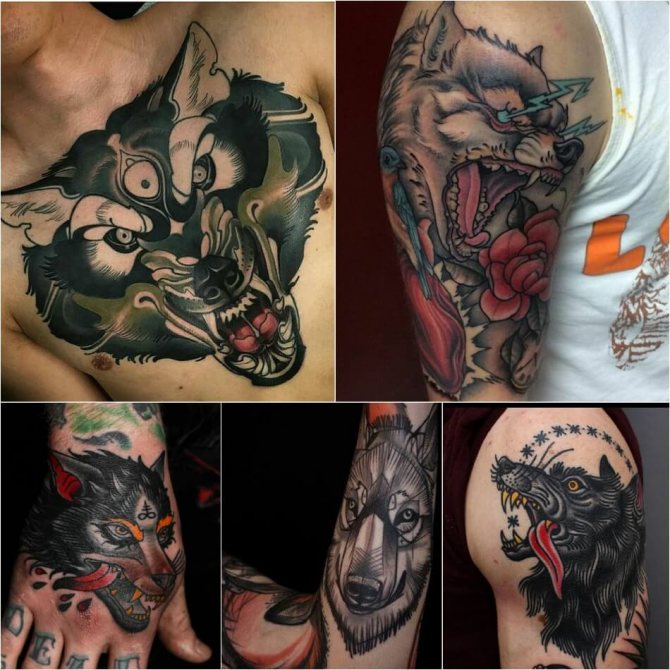 Tetovaný vlk - výběr silných mužů se silnou vůlí, charakterem a zásadami. Tetovací vlk si vybírá nezávislé lidi, kteří nezrazují své vlastní zájmy. Tetovaný vlk bude talismanem svého pána, ochrání ho v obtížné situaci a dodá důvěru v sebe sama.