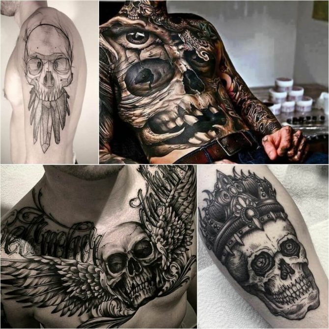 Většina mužů si tetování lebky spojuje s motorkářskou tradicí: naprostá svoboda, víra v osud a vlastní síla. Mužská lebka je symbolem sebevědomí, mužnosti a síly. Tetování s lebkou připomíná muži jeho pravý účel, že čas, který mu byl vyměřen, musí prožít smysluplně.