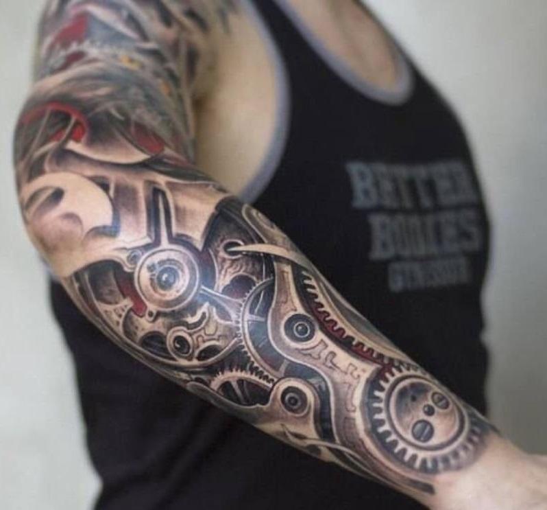 Nejoblíbenějším designem pánského tetování je mechanika aplikovaná na paži ve formě rukávu. Mechanismy viditelné skrze léze a trhliny na kůži připomínají části robotů, jako je Terminátor. Rukávy si většinou nechávají tetovat lidé, kteří jsou nezávislí na názorech ostatních a mají silnou vůli.