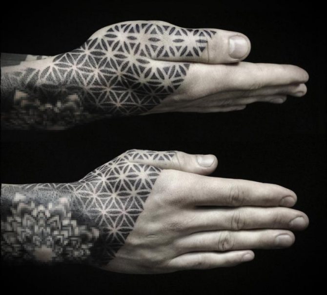 Technicky je možné tetování na rukou. Mají však minimálně tenkou vrstvu podkožního tuku. A počet nervových zakončení na nich je poměrně vysoký. Proto je proces tetování ruky mírně až dosti bolestivý.