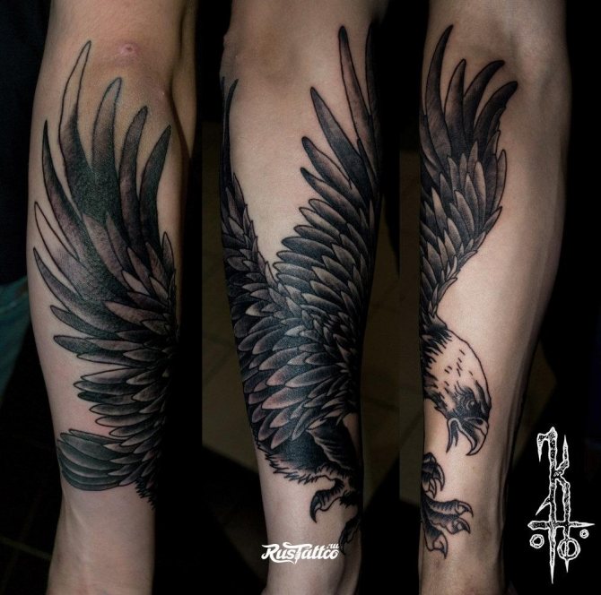Tetování tohoto ptáka začalo v dávné minulosti. Vědci říkají - více než 4000 let před naším letopočtem Tento symbol začal být uctíván ještě před organizací prvních náboženství, hlavních kultů, a obdařil ho mnoha nadpřirozenými schopnostmi a funkcemi.