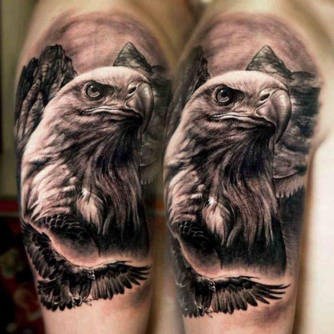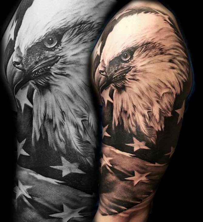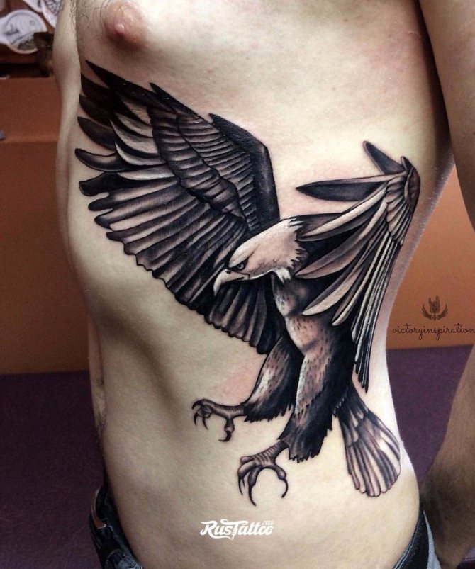 Obrázek orla může být doplněn pichlavou růží v zobáku nebo pařátech ptáka. Masožravec může být také zobrazen sedící na větvi a hledící do dálky. Představivost moderních mistrů tetování vám umožní nakreslit takový obrázek s jakýmikoliv detaily a dát mu vhodnou náladu. Toho lze dosáhnout i pomocí barevných akcentů a filozofických nápisů.