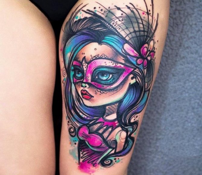 Často je tetování umístěno po celé délce nohy, čímž ji opticky prodlužuje. Ale na takové snímky jsou kladeny zvláštní požadavky. Koneckonců, pokud je skica zvolena špatně, mohou nohy vypadat příliš plné nebo zcela ztratit svou přitažlivost.