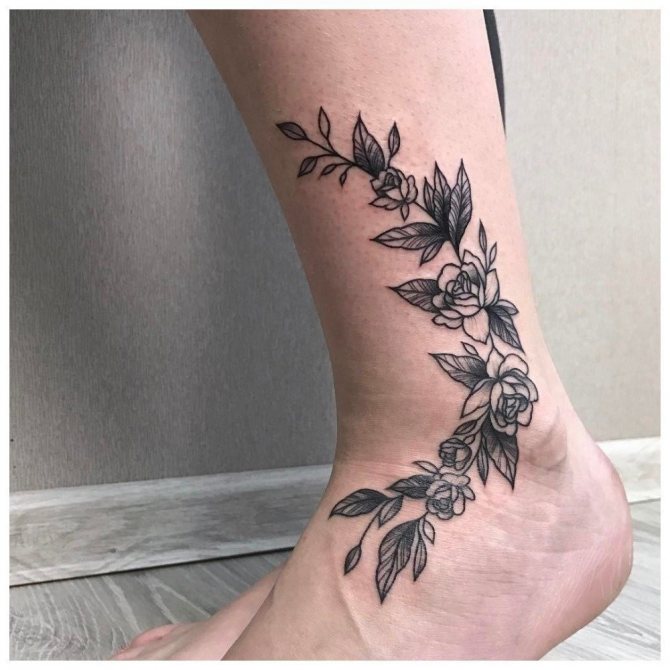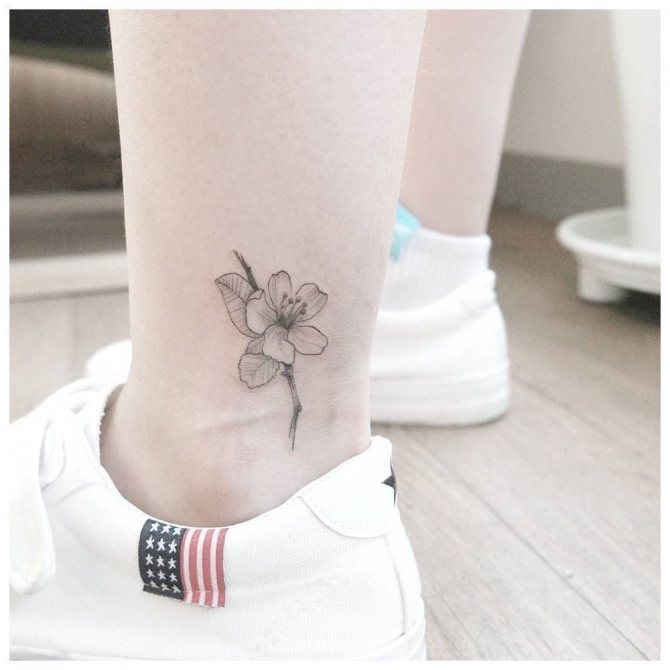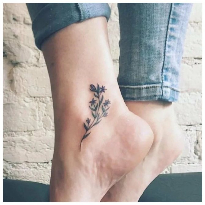 Na kotníku nebo chodidle můžete mít také jakýkoli minimalistický design. V tomto případě lze jako náčrtek použít naprosto libovolný objekt. Dobrým nápadem může být také obrysové tetování.