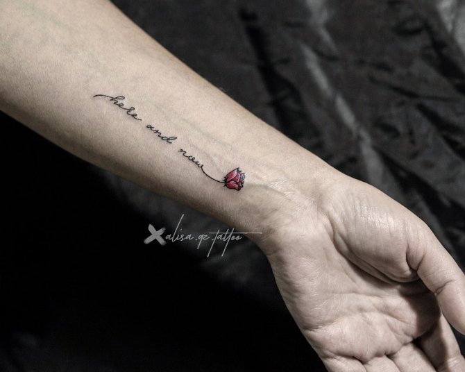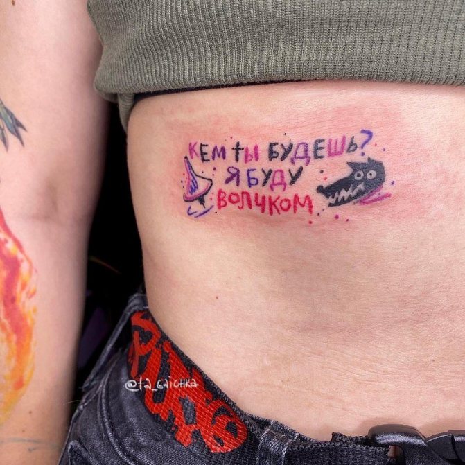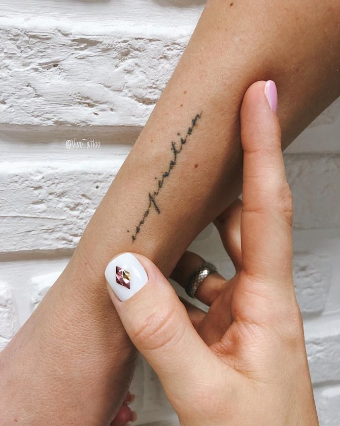 Tetování v podobě nápisů vždy oslovovalo příznivce zdůraznění jejich individuality, zejména proto, že krátká věta nebo pár slov dnes může obsahovat hluboký význam. Takové vzory mohou být v různých jazycích, například v latině, angličtině nebo čínštině, a slouží nejen jako hezká dekorace, ale také jako připomínka, motivace nebo slogan. Může jít o výzvu k akci, frázi, která demonstruje osobní vlastnosti jejího majitele, a podobně. Lze je aplikovat na zápěstí, předloktí, kotníky, boky, oblast klíční kosti, krk nebo prsty. V tomto případě vše závisí na osobních preferencích klienta.