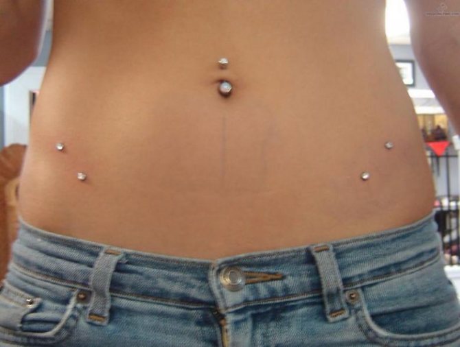 - Povrchový genitální piercing. Tento typ zahrnuje punkci kůže na stydké kosti. Lze implantovat jeden nebo více mikrodermálních implantátů. Tento druh intimního piercingu není praktický, vyžaduje větší pozornost během hojení a je často odmítán.