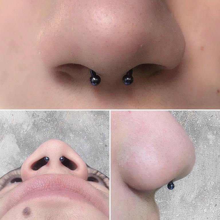 Dvojitý piercing v nose je pro mě vzpomínkou na celý život. Po piercingu jsem musela podstoupit spoustu procedur a dokonce i operaci, nosní přepážka byla velmi poškozená, protože umělec provedl piercing na mou žádost. Něco se pokazilo a nakonec jsem byl 6 měsíců mimo provoz.
