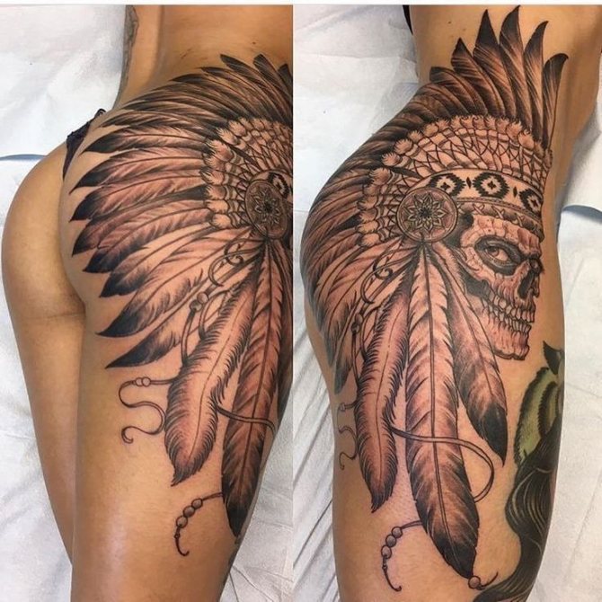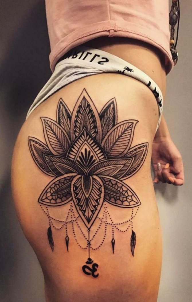 Při zvažování možností tetování na stehně pro dívky stojí za to podívat se na vzory. Geometrické tvary nebo proplétající se linie lze umístit podél kontury boků. Tetování může začínat na hýždích a končit u kolene.