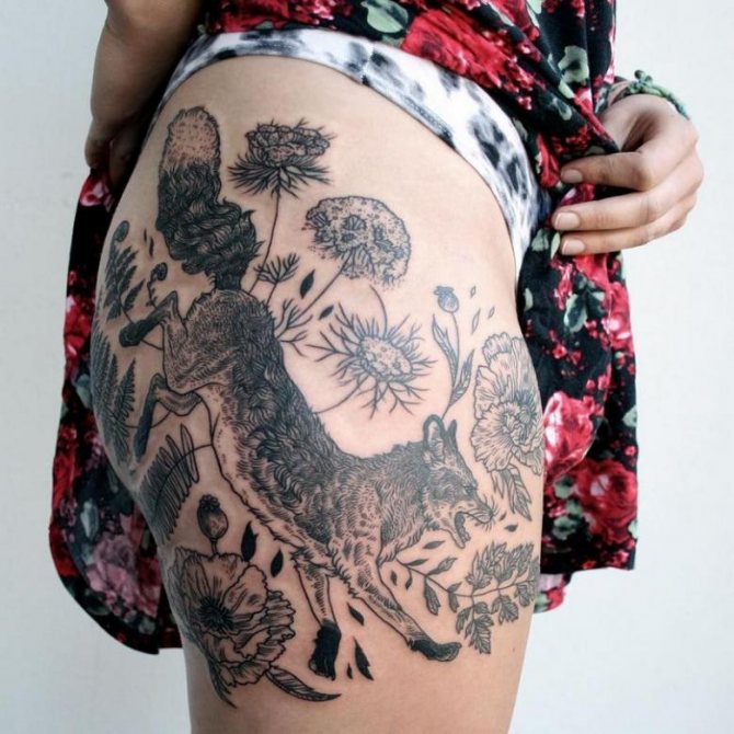 Každá dívka chce vyjádřit svou individualitu a krásu různými způsoby. Někteří si vybírají nejvhodnější oblečení, jiní se nechávají tetovat. Jistě existuje mnoho částí těla, kde bude kresba vypadat atraktivně. Ale nemluvě o popularitě jeho umístění přesně na stehně je nemožné. Vzhledem k tomu, že plocha v této zóně je poměrně velká, můžete být nápadití a zvolit objemný, velký obraz. Kromě toho je možné jej v případě potřeby snadno skrýt pod oděv.