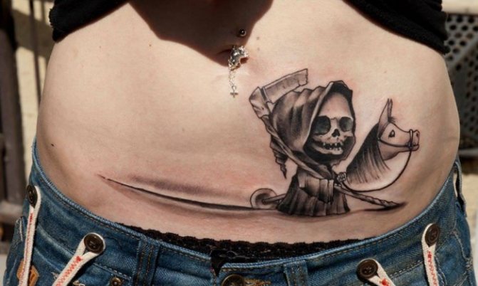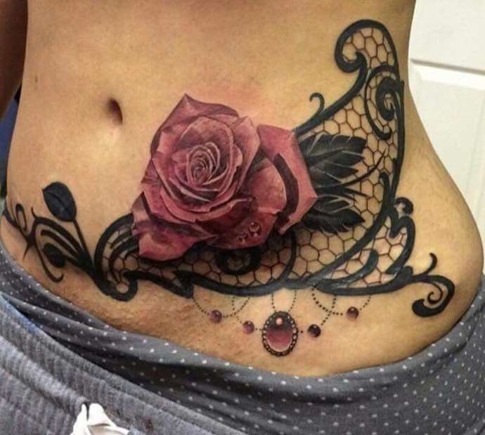 Alternativním způsobem, jak snížit nápadnost jizvy na břiše, je aplikovat na problematickou oblast bio nebo běžné tetování: