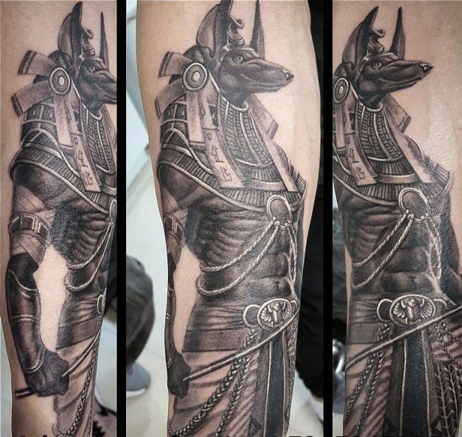 Pokud jste fanoušky staroegyptské mystiky a obdivujete jejich panteon, určitě si zamilujete tetování boha smrti Anubise. Božstvo zobrazované s hlavou šakala/psa a lidským tělem. V jedné ruce drží kotník a v druhé hůl. Je průvodcem do posmrtného života a zároveň jedním ze soudců lidských duší.