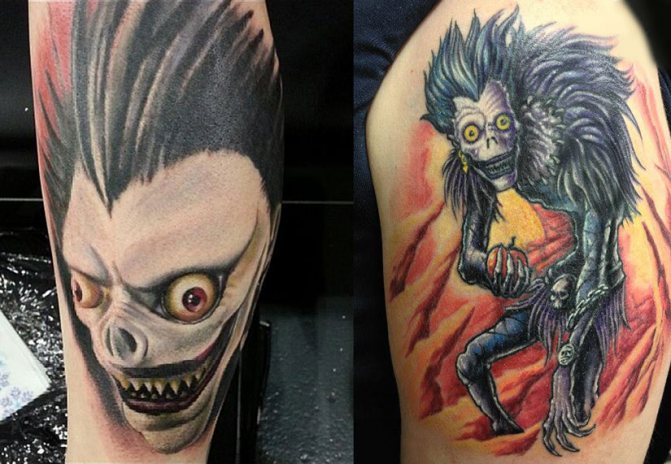 Japonci mají v moderní kultuře samostatné pojetí božstev šinigami. Někteří autoři tvrdí, že existuje jeden bůh smrti, jiní píší, že jich je mnoho. S popularizací japonské kultury se podobná tetování začala dělat i daleko za hranicemi této země a Asie obecně. Nejoblíbenějším šinigami je Rjúk, postava z mangy, anime a filmů Death Note.