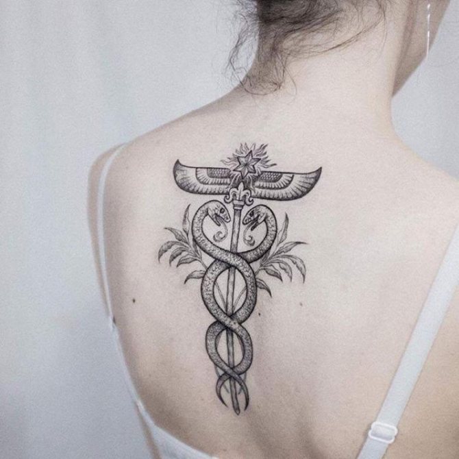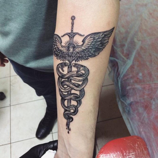 Varianty hotových tetování caduceus si můžete prohlédnout na fotografii a videu, také je možné zdarma stáhnout krásné podklady kreseb pro budoucí tetování.