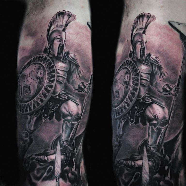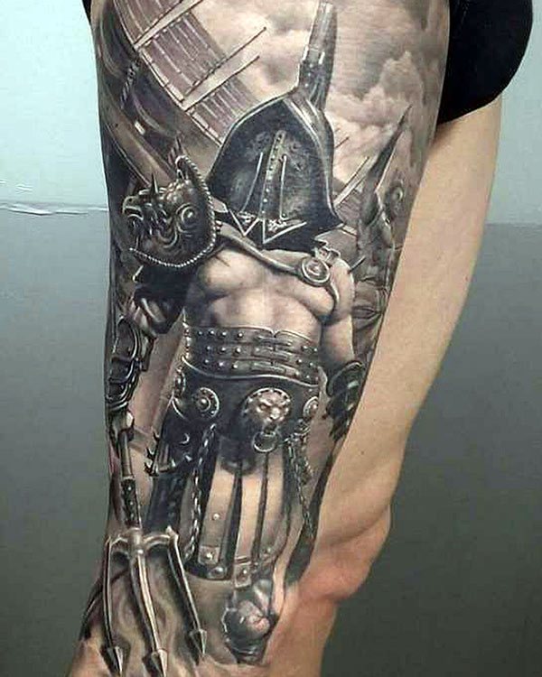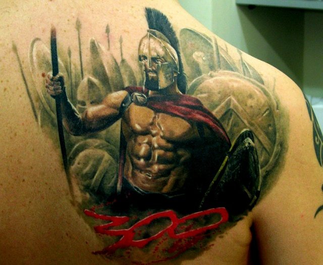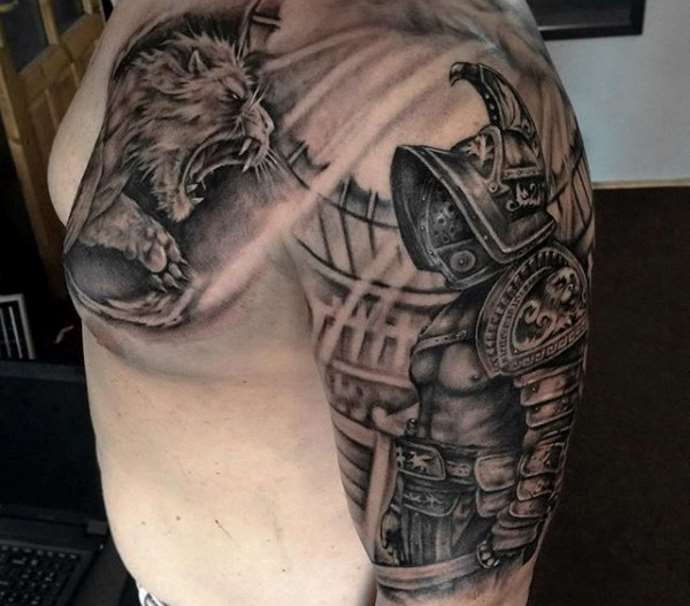 Tetování gladiátora na paži, rameni a dalších částech těla