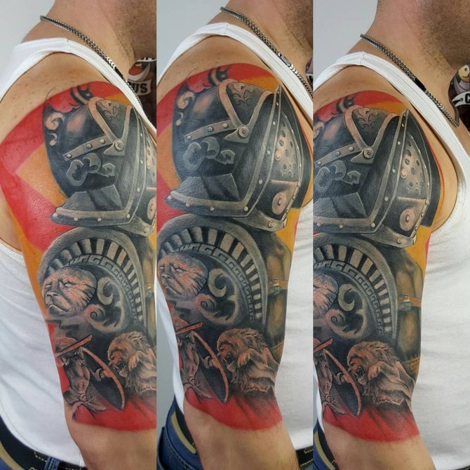 Existují také návrhy tetování, u nichž si muži nevybírají úplný vzhled gladiátora, ale zobrazují pouze určité jednotlivé prvky, jako je helma nebo brnění. V tomto případě tetování mění svůj význam a může symbolizovat následující: