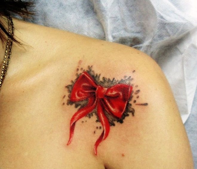 V našem životě je luk symbolem oslavy, dekorace, daru. To je důvod, proč mnoho lidí přichází na mysl, aby tetování na těle ve formě jasného ornamentu. Tradičně si dívky pro své tetování vybírají luk a používají ho v kompozicích s květinami, motýly, srdíčky.