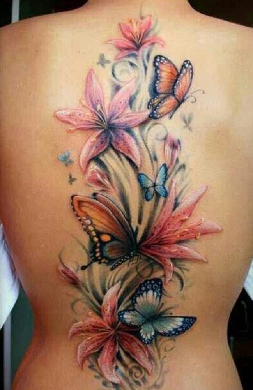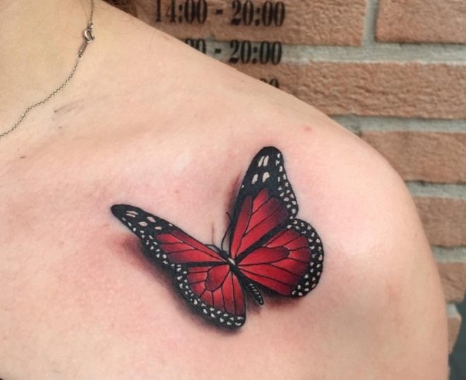 Použitím zářivých barev v designu zdůrazňuje nositel motýlího tetování své povznesení nad šedí každodenního života a touhu udělat život jasnějším.