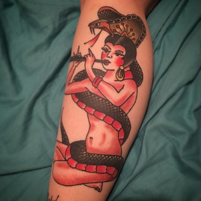 Například nůž zabalený do hada naznačuje členství ve zlodějské bandě. Nezřídka se na těle člověka objevuje tetování nožem v roli oběti nebo osoby, která si přeje být mrtvá. Než si takový obrázek umístíte na tělo, je dobré si dobře promyslet všechny možnosti, které obrázek nabízí.