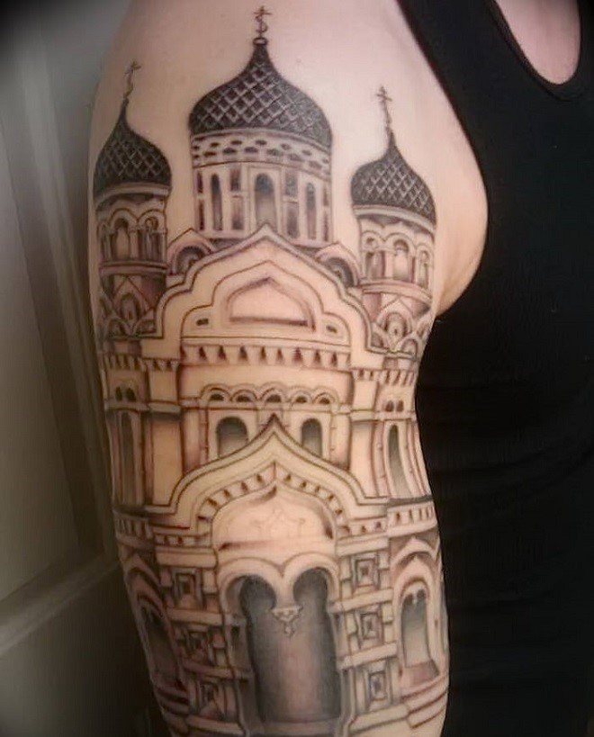 Než si na tělo umístíte tetování v podobě katedrály, kostela nebo jiného chrámu s kopulemi, stojí za to podrobně prostudovat jeho význam. Katedrála, kostel nebo jakýkoli jiný druh chrámu je znamením minulého uvěznění člověka. Počet kopulí udává počet let strávených za mřížemi.