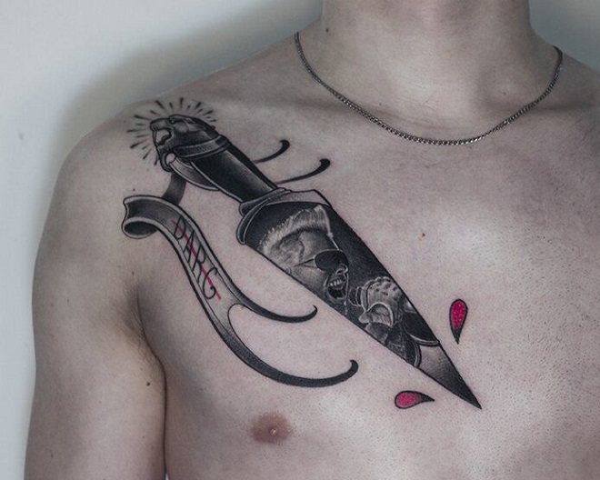 Pokud je nabitý nůž zobrazen s kapkami krve, znamená to, že osoba je připravena udělat rozhodující znamení. Dýka s lebkou symbolizuje smrt a slouží jako talisman proti neštěstí. A pokud je nůž probodnutý srdcem, je jasné, že jeho nositel prožil milostný románek. Často se takové kresby objevují i na těle vězněných osob. I zde existují určité významové skupiny založené na způsobu zobrazení obrazu.