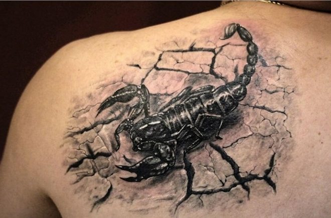 Nejčastěji se obraz škorpióna provádí realistickým způsobem.
